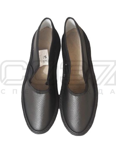 Тапочки нат.кожа без перфорации подошва пористая резина цв.чёрный в Томске
