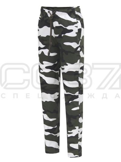 Брюки спортивные "Заряд" цв.бело-зелёный камуфляж 2 тк.футер в Томске