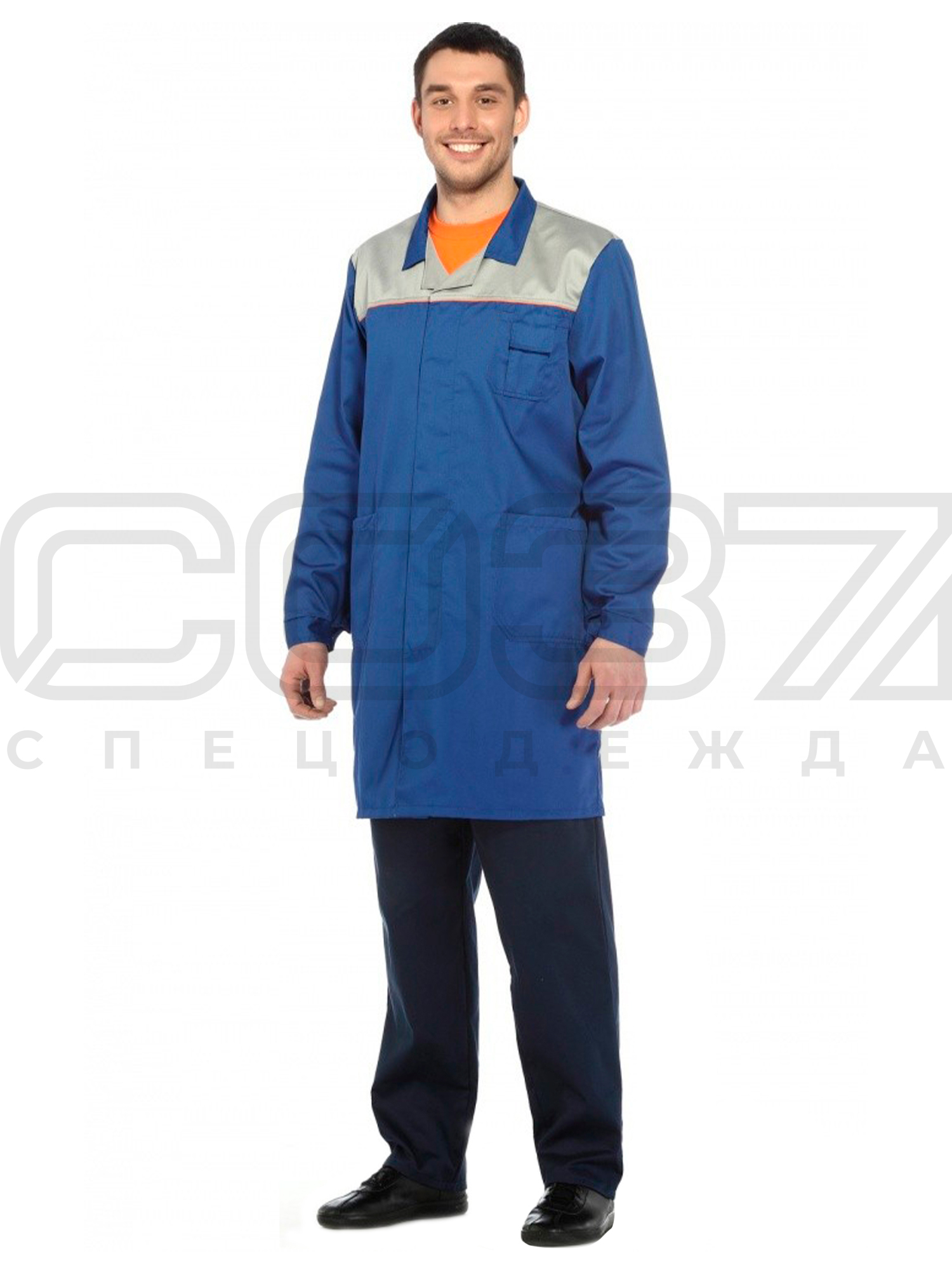 Халат рабочий мужской "Абразив" цв.василёк/св.серый тк.смесовая в Томске