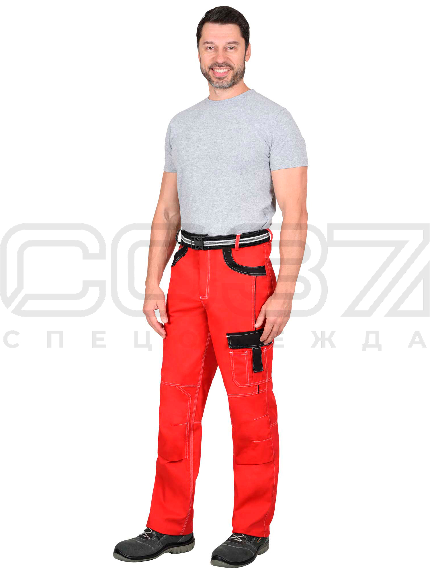 Брюки рабочие "Имидж" цв.красный/чёрный тк.смесовая в Томске