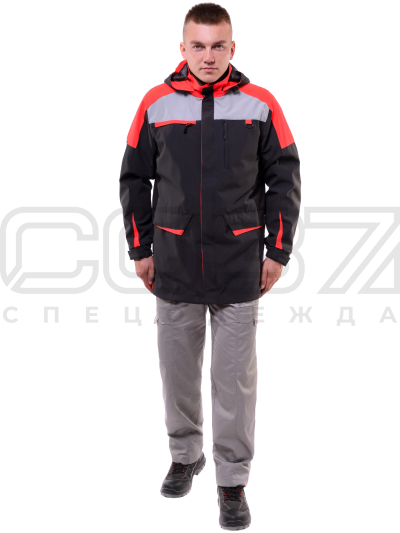 Куртка-ветровка "Феникс" цв.т.серый/св.серый/мандарин тк.рип-стоп двойной в Томске