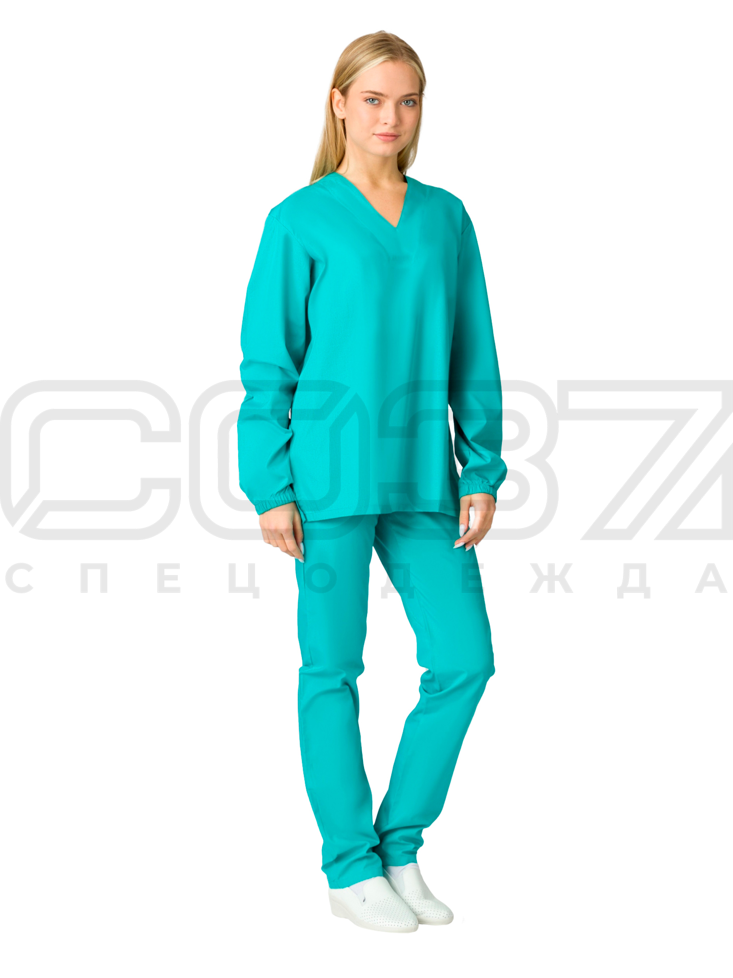 Костюм женский ХАССП цв.бирюзовый тк.тиси в Томске
