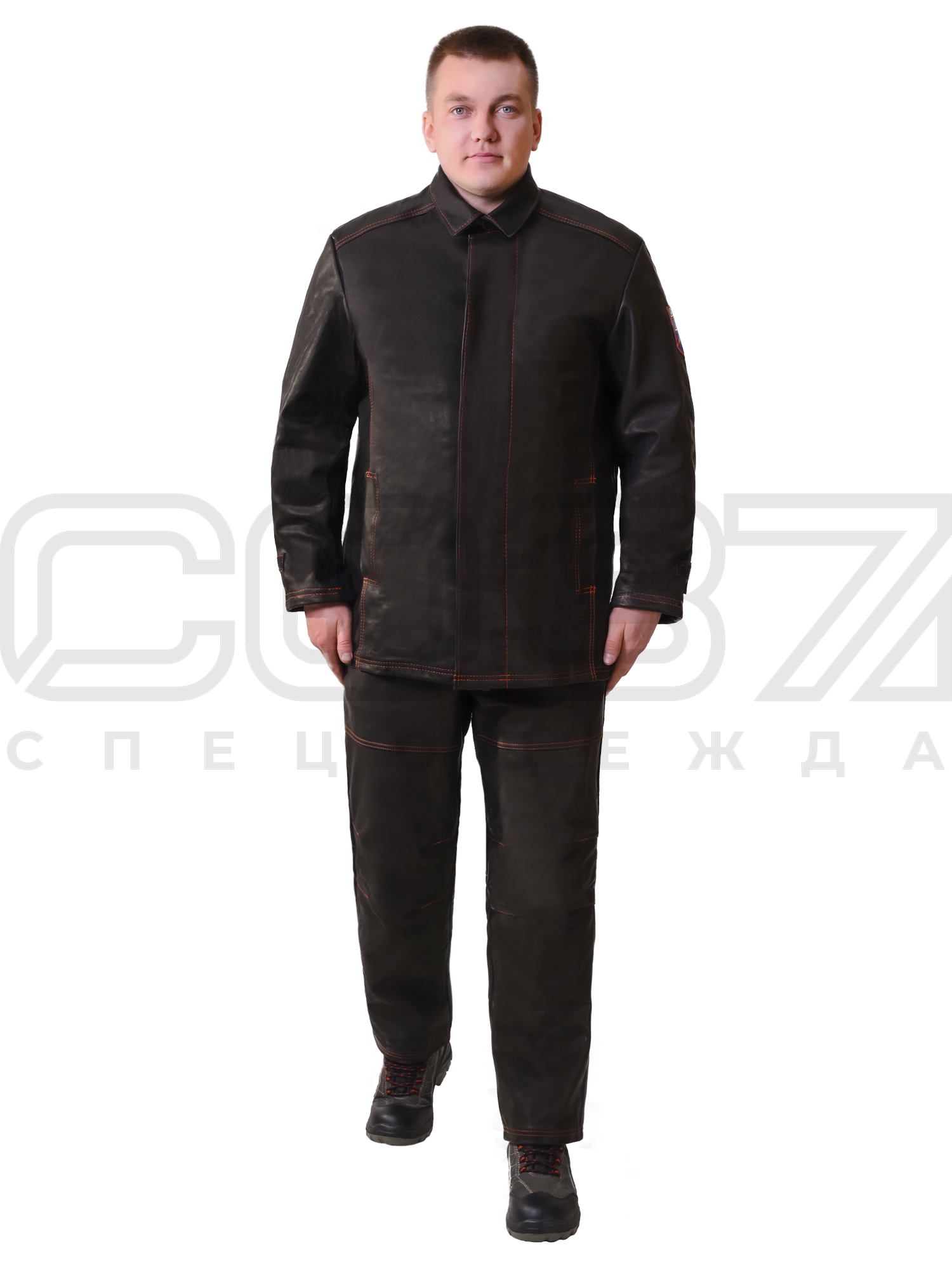 Костюм кожаный соответствует техническиму описанию ТО 8572-69369782 -001-2014 к ГОСТ 12.4.250-2013.