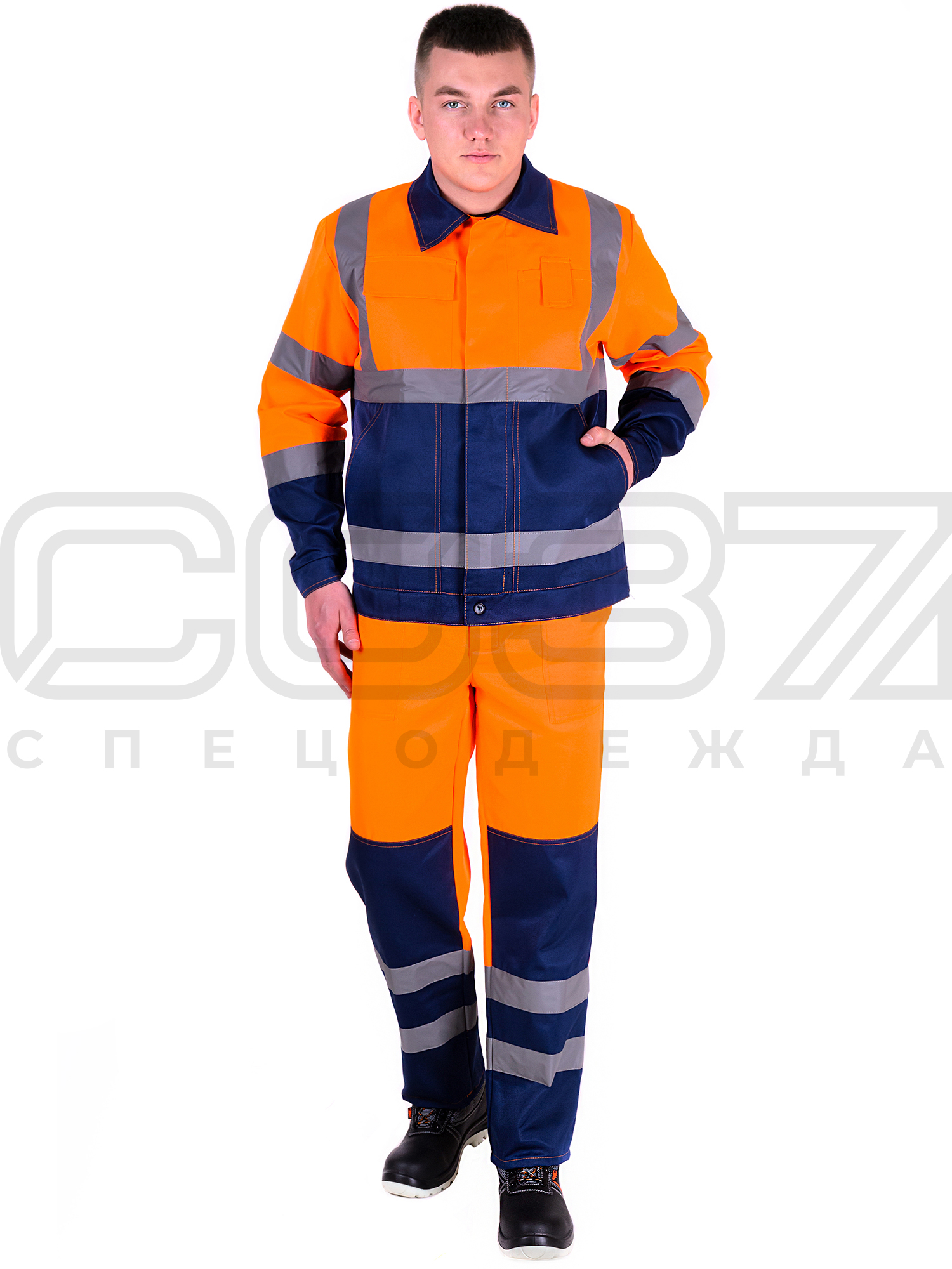 Яркая сигнальная ткань оранжевого цвета в сочетании со светоотражающими полосами обеспечивает высокий уровень безопасности проведения дорожных работ.