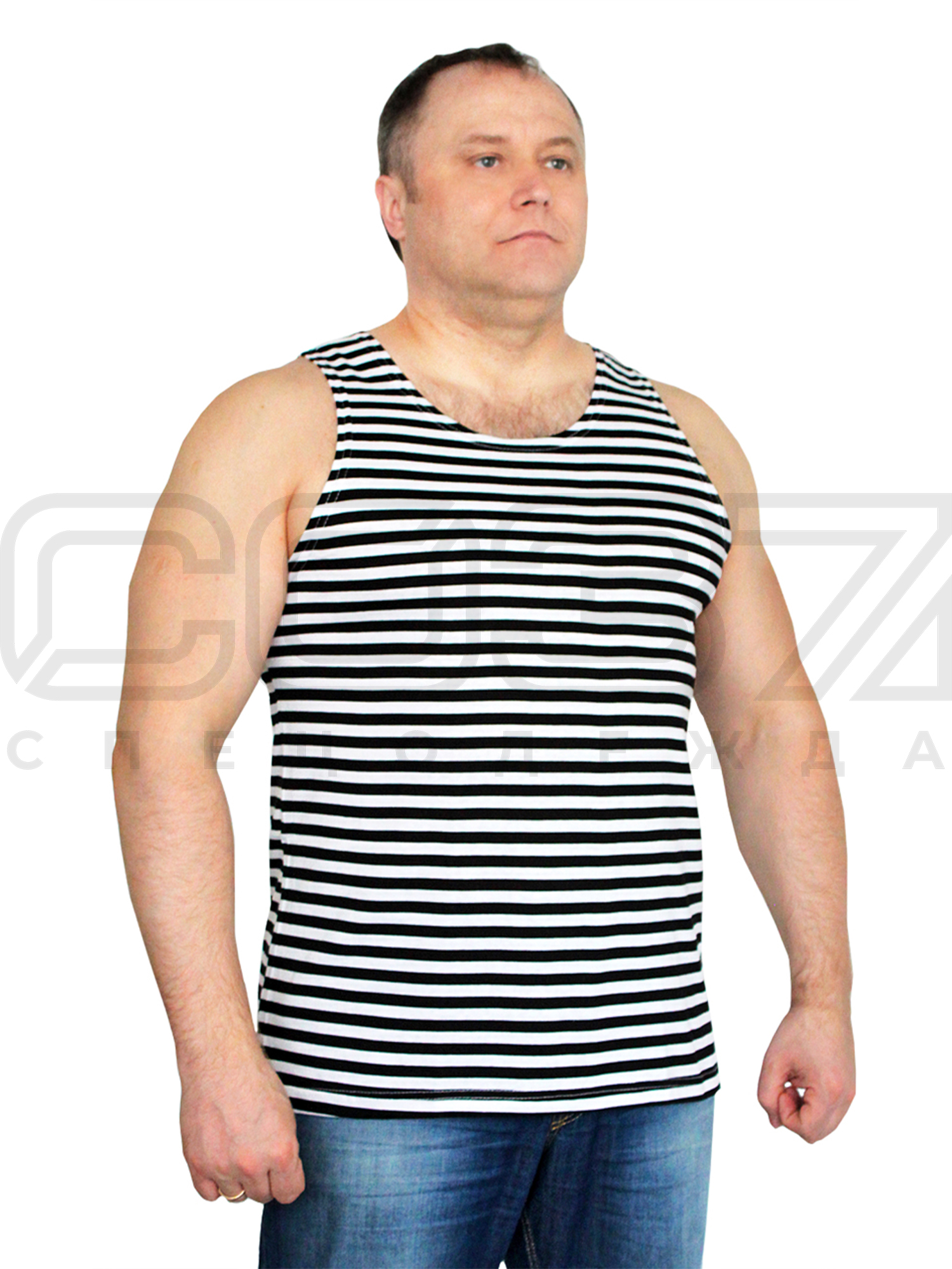 Майка-тельняшка с узким плечом, чёрная полоса.