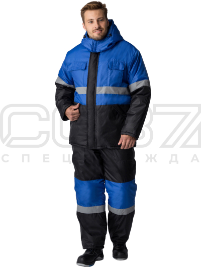 Костюм рабочий зимний "Дрейф" с СОП цв.василёк/чёрн тк.оксфорд (куртка+пк) в Томске