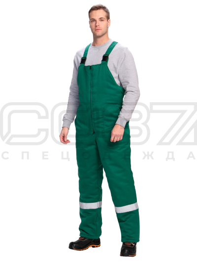 Полукомбинезон рабочий зимний "Маховик" с СОП цв.зелёный тк.смесовая в Томске