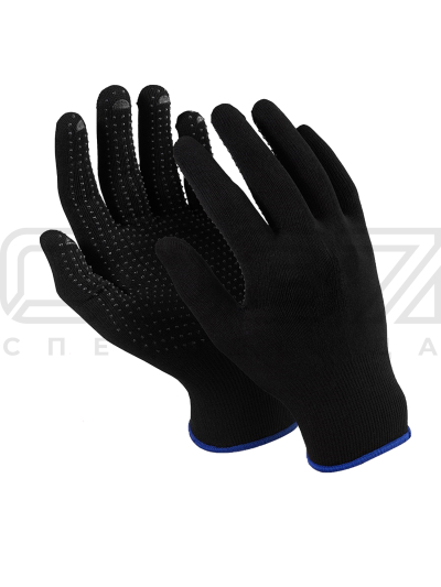 Перчатки нейлоновые чёрные двойной оверлок 15 класс вязки ПВХ Точка в Томске