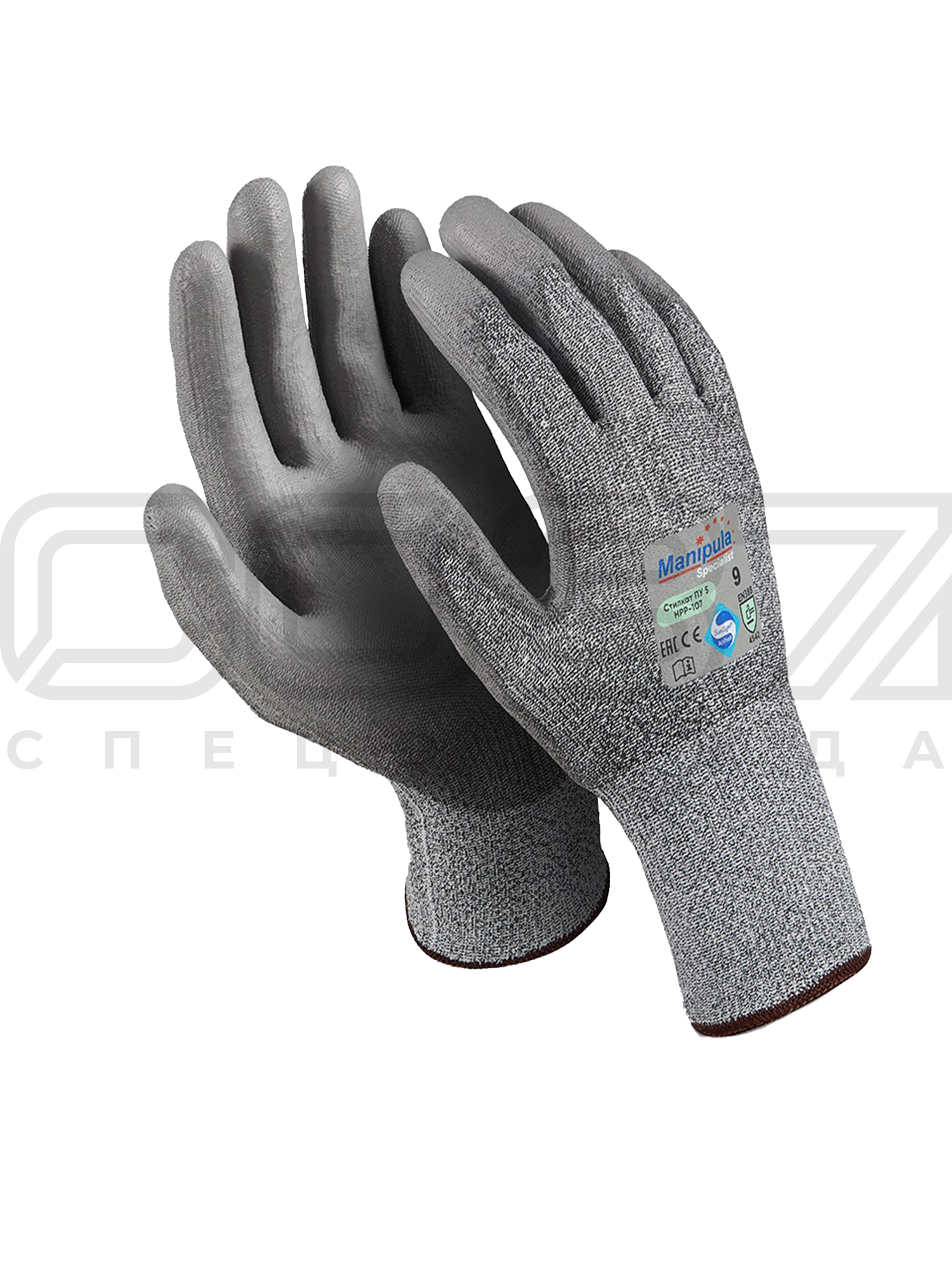 Перчатки "Стилкат ПУ 5 HPP-107" двойной оверлок 10 класс вязки полиуретановое покрытие.