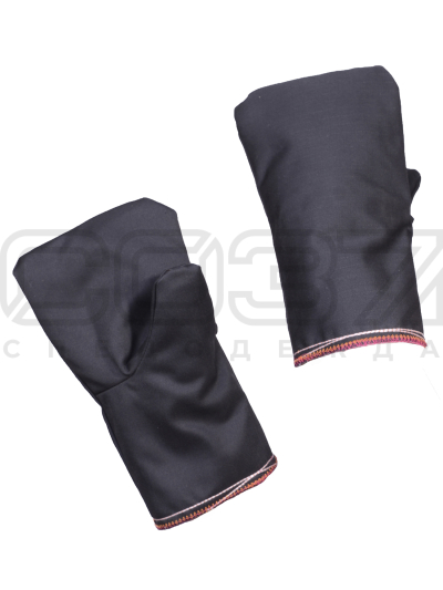 - Рукавицы изготовлены из х/б ткани "диагональ" гладкокрашеная плотностью 220 г/м2, чёрного цвета.